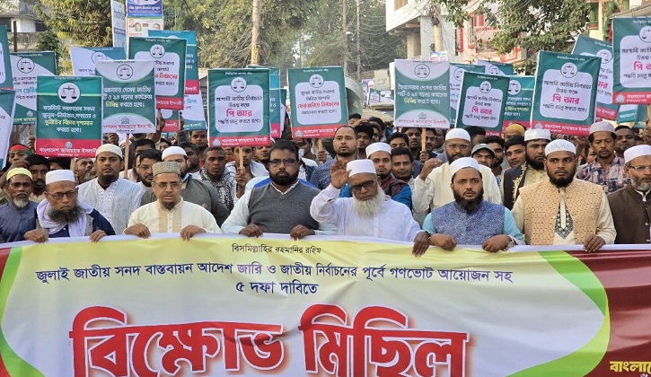 চাঁপাইনবাবগঞ্জে জুলাই সনদ বাস্তবায়নের আদেশ জারি ও নভেম্বরের মধ্যেই গণভোটের আয়োজনসহ ৫ দফা দাবিতে বিক্ষোভ মিছিল-সমাবেশ অনুষ্ঠিত হয়েছে। বাংলাদেশ জামায়াতে