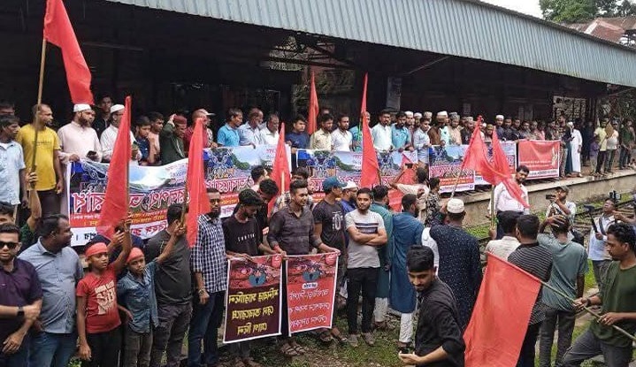 সিলেট-ঢাকা রেলপথ সংস্কারসহ ৮ দাবিতে মৌলভীবাজারে অবরোধ