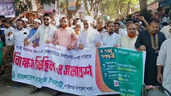 শান্তিগঞ্জে ৫ দফা গণদাবিতে জামায়াতের বিক্ষোভ মিছিল