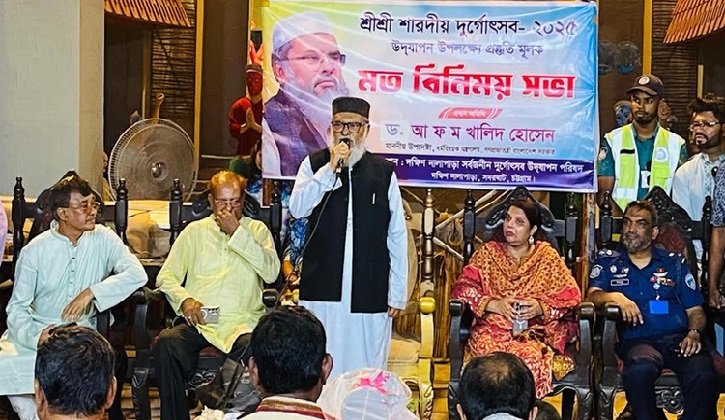 আ ফ ম খালিদ হোসেন বলেছেন, আপনারা যারা পূজার্থী, তারা সাহসের সঙ্গে বুক ফুলিয়ে দুর্গাপূজা উদযাপন করবেন। আপনারা যাতে নির্বিঘ্নে