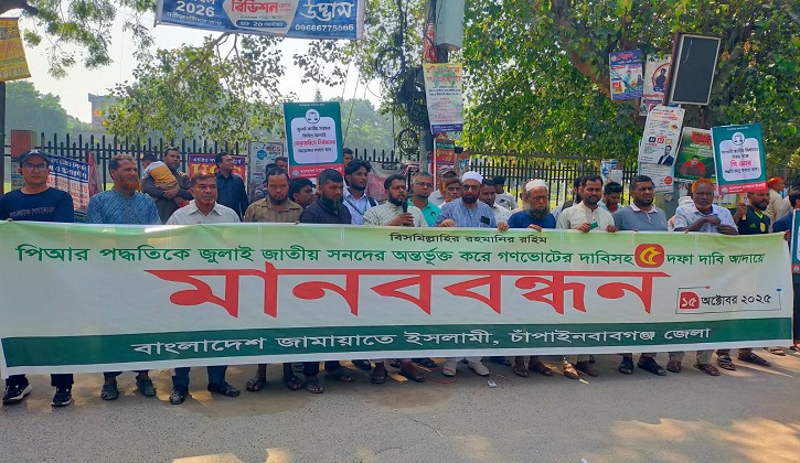চাঁপাইনবাবগঞ্জে গণভোটের দাবিসহ ৫ দফা বাস্তবায়নের দাবিতে জামায়াতের মানববন্ধন